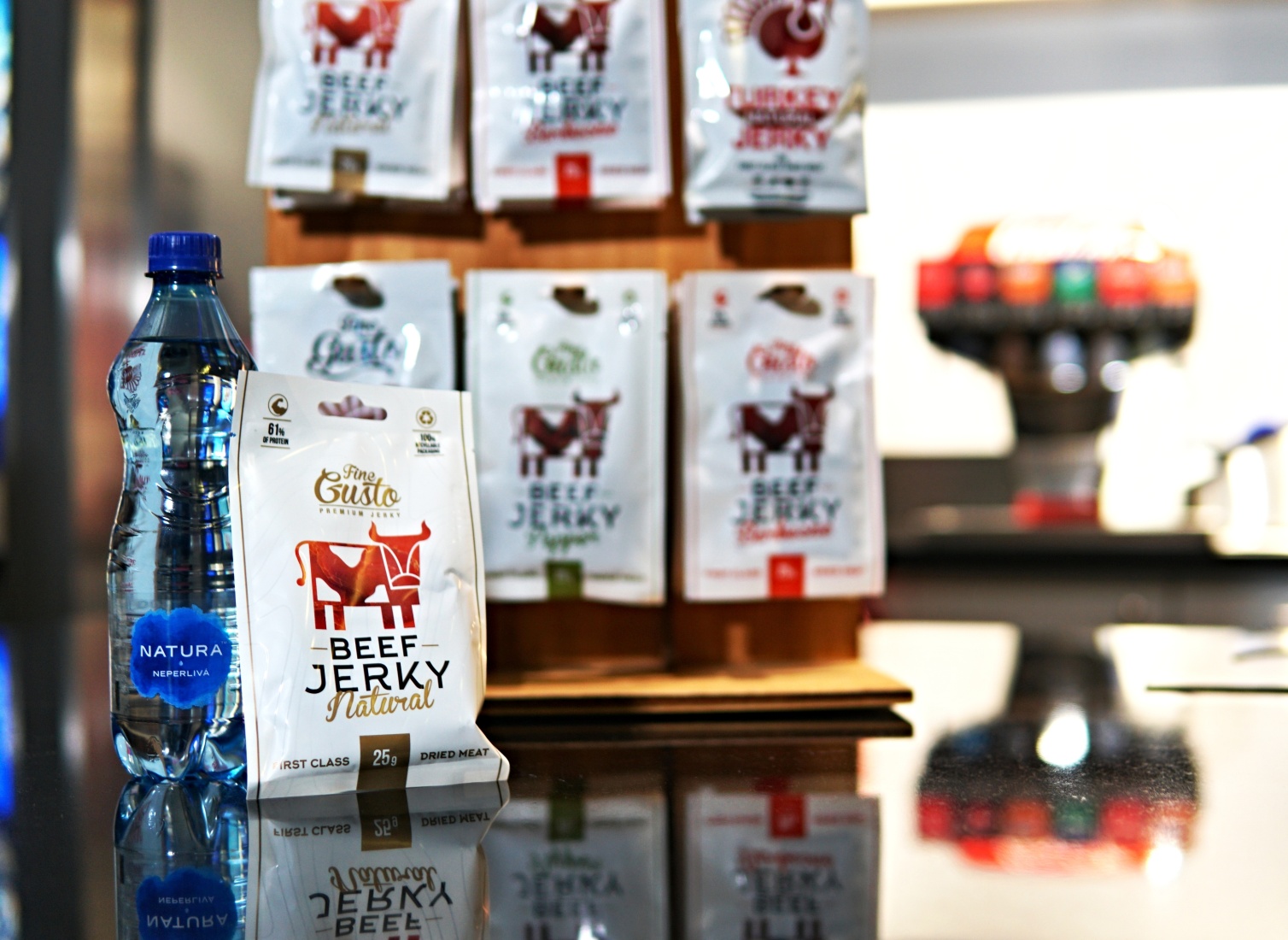 V multikinech CineStar naleznete téměř kompletní sortiment sušeného masa Fine Gusto. Můžete si vybrat čisté hovězí nebo krůtí maso pouze dochucené solí, nebo jerky ve variantě BBQ nebo s pepřem. Můžete využít zvýhodněné Fine Gusto menu, které obsahuje balíček sušeného masa a perlivou či neperlivou vodu.